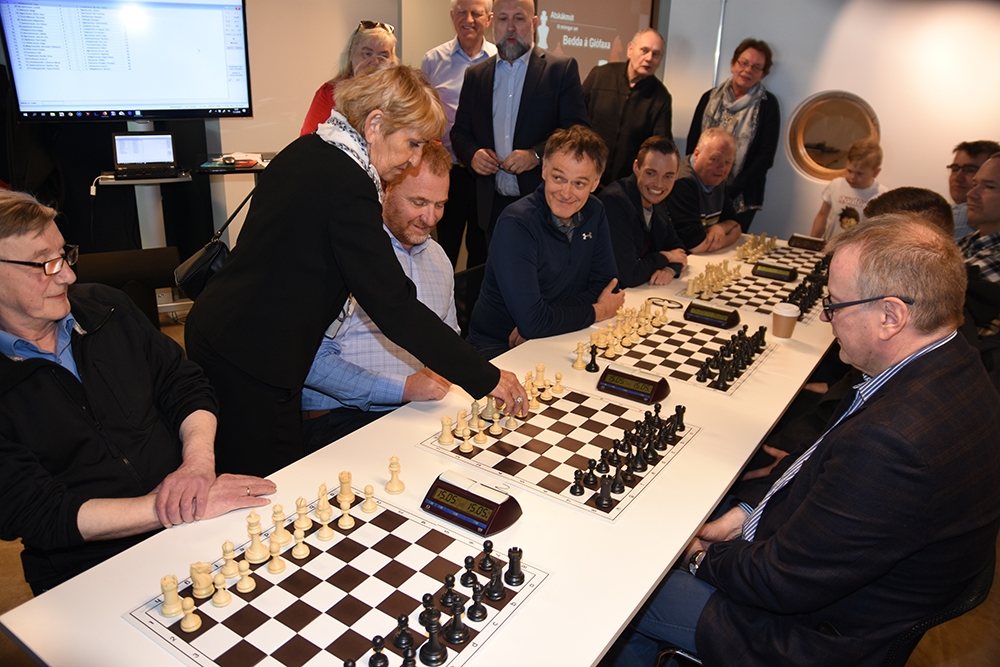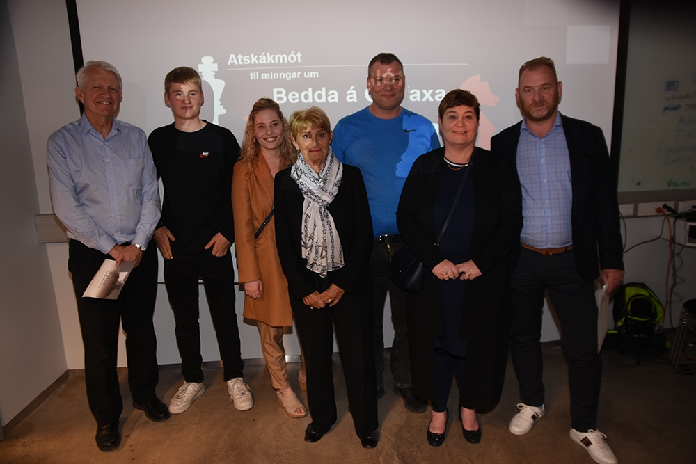 Íris Róbertsdóttir, bæjarstjóri kom svo upp og óskaði fjölskyldu Bedda og Taflfélagi Vestmannaeyja til hamingju með glæsilegt mót. „Það er frábært að sjá félagið eflast og hvað barna- og unglingastarfið var öflugt í vetur. Mér þótti og þykir líka óendanlega vænt um Bedda og gleðst yfir því að nafni hans er haldið á loft,“ sagði Íris.