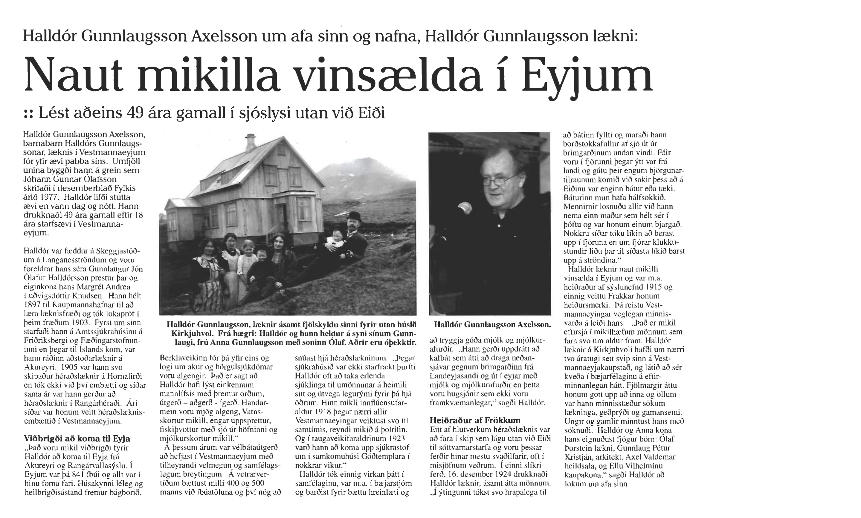 Grein um erindi Halldórs Gunnlaugssonar Axelssonar um afa sinn og nafna, Halldór Gunnlaugsson lækni