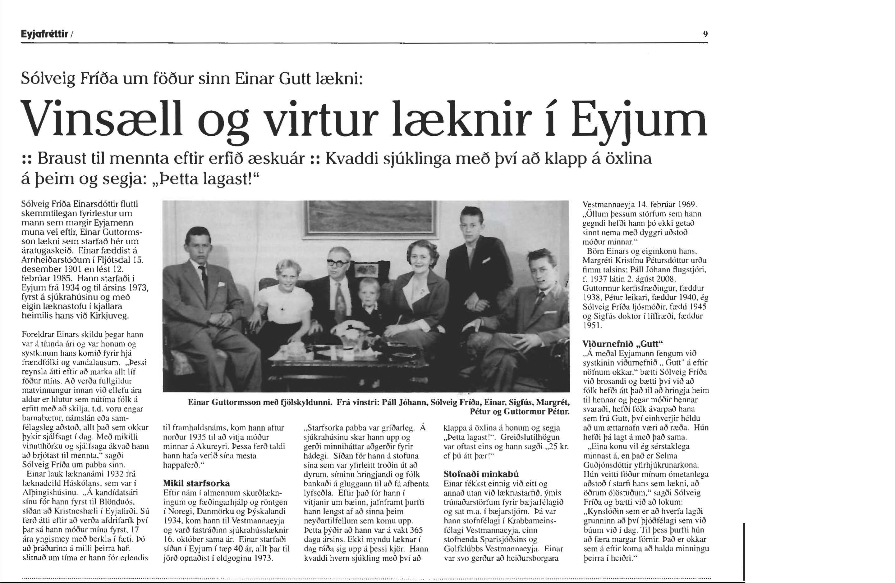 Grein um erindi Sólveigar Fríðu um föður sinn Einar Gutt lækni
